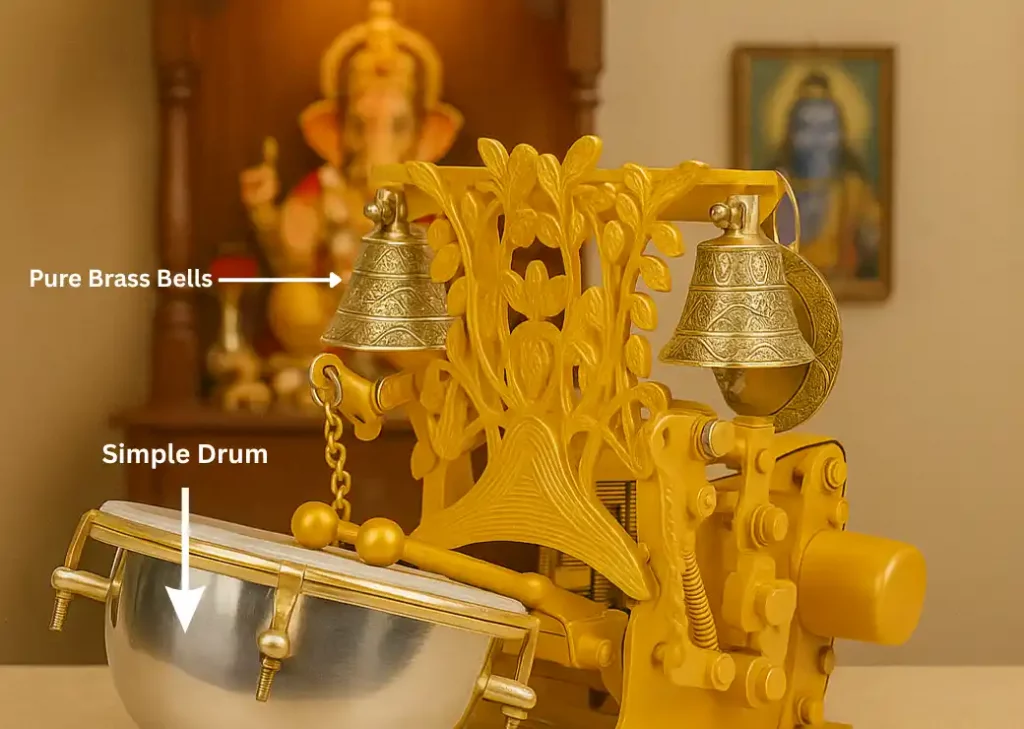 The bells are made from high-quality pure brass, giving a rich, authentic temple sound every time the machine runs—no artificial effects, just the natural charm of real bells.