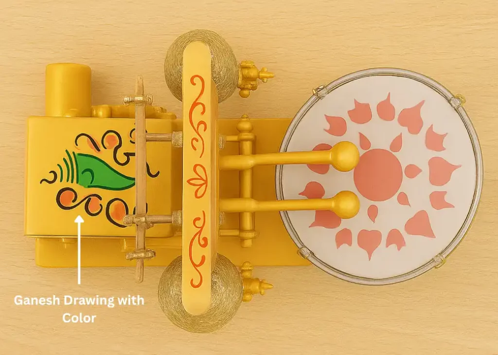 - Premium Edition – Ganesh idol with colorful god drawing & hand-painted drum